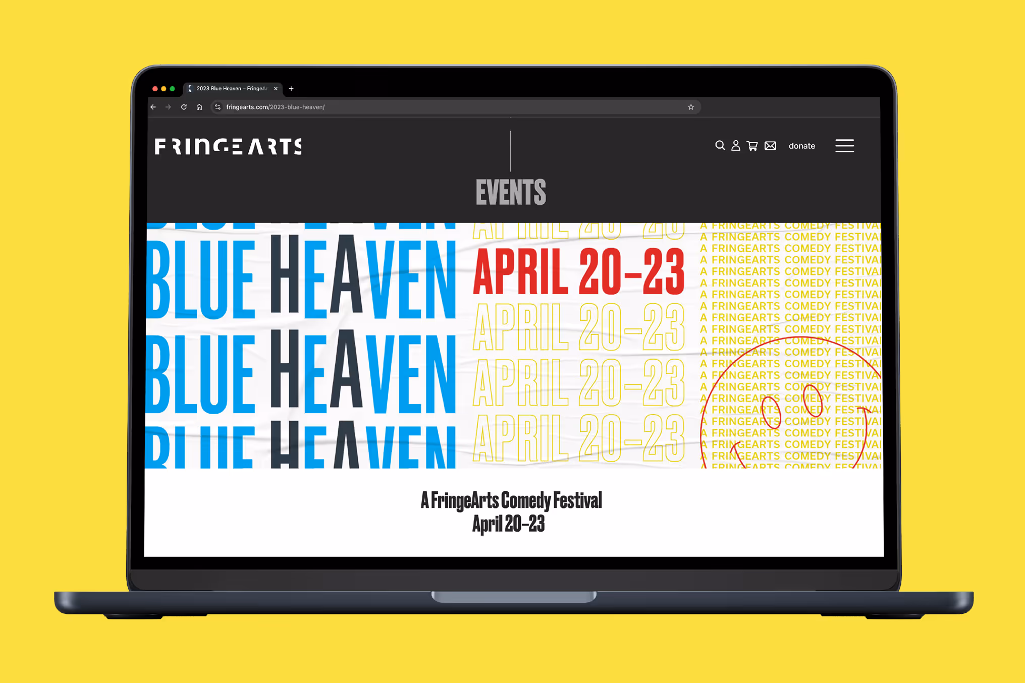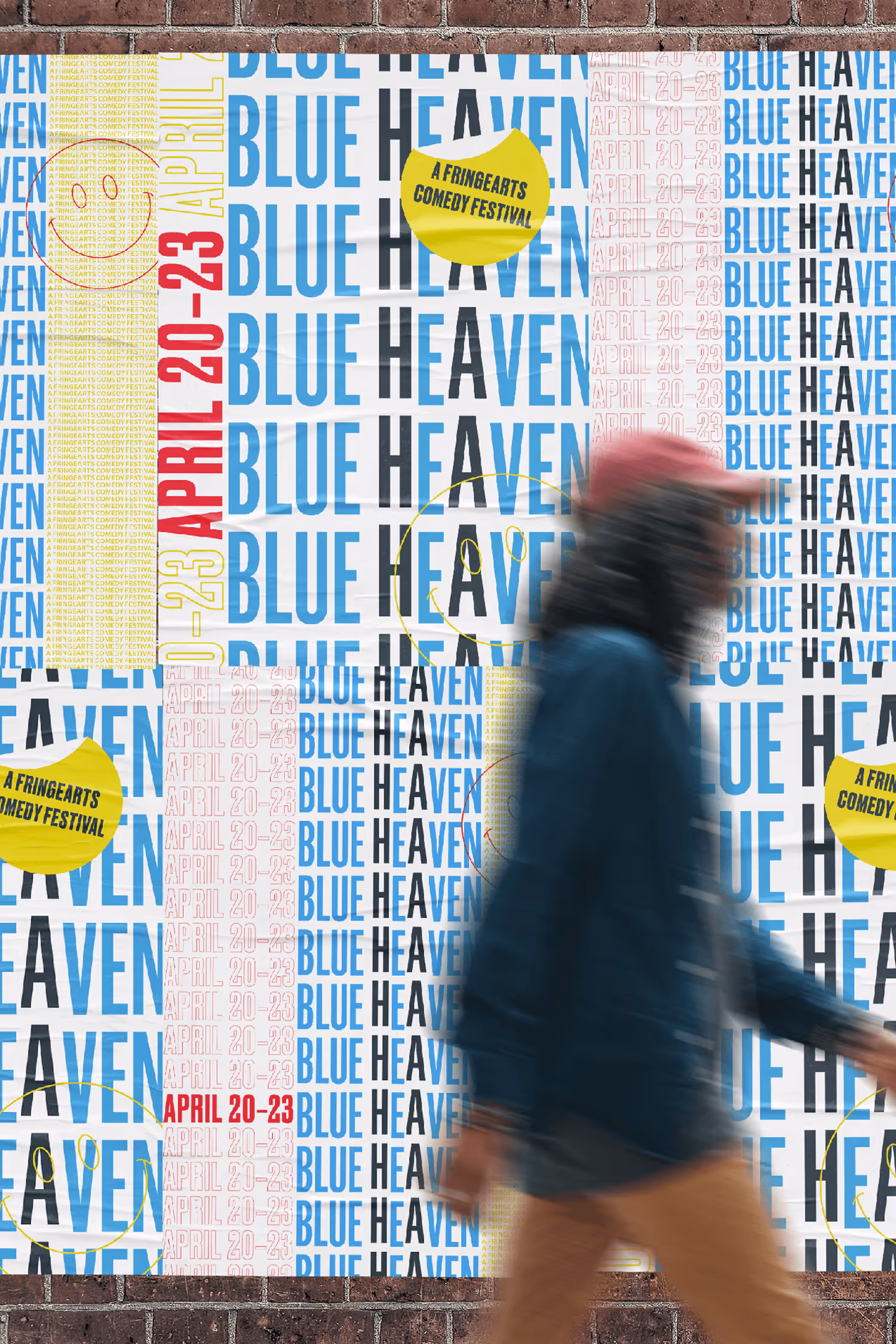 Blue Heaven is FringeArts’ annual comedy festival, featuring up-and-comers on the scene. This identity refresh took a bold, DIY, maximalist approach, inspired by provocative and boundary-pushing performances (and a nod to 2007 stoner cult classic Smiley Face). Event promotion was rolled out over web, social, and, fittingly, with posters around the city.